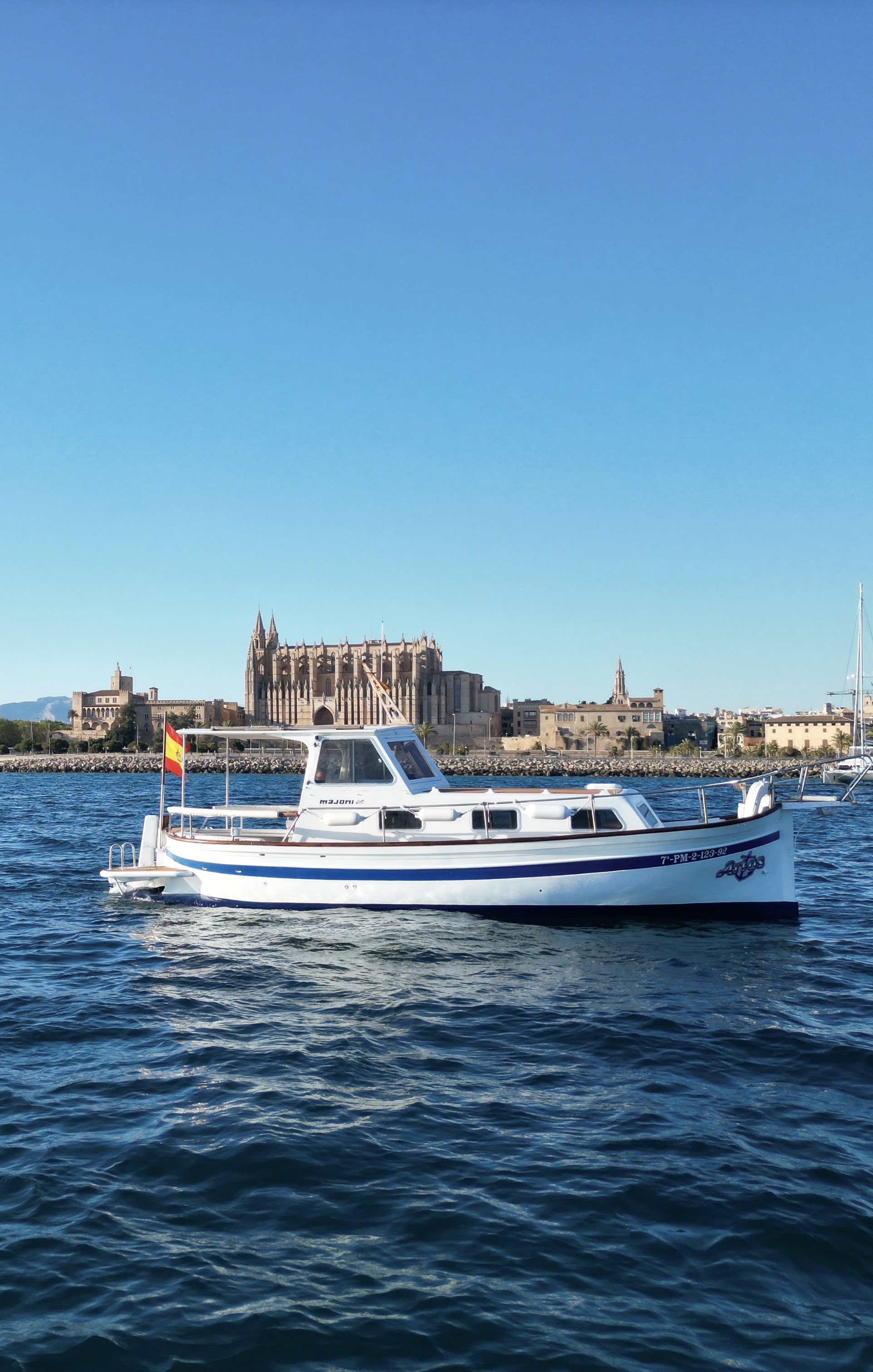 Salimos navegando de la bahia de Palma donde podremos distinguir el castillo de Bellver y nos dirigimos a la Seu de Palma. Navegaremos frente a ella y nos dirigiremos hacia illetas para observar la puesta de sol y regresaremos a puerto con las ultimas luces del dia.